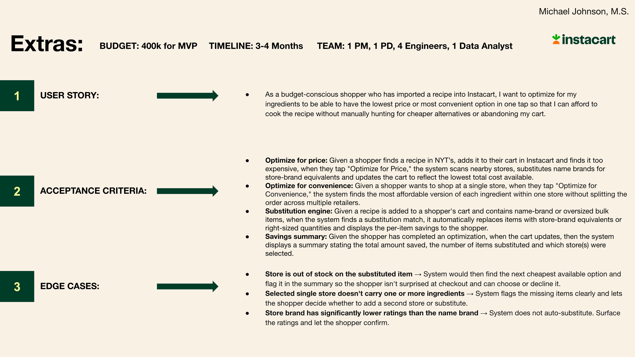 Smart Pantry + Recipe Mode Product Brief This is an unsolicited product brief section developed independently by me as part of my portfolio. It is not affiliated with or endorsed by Instacart.